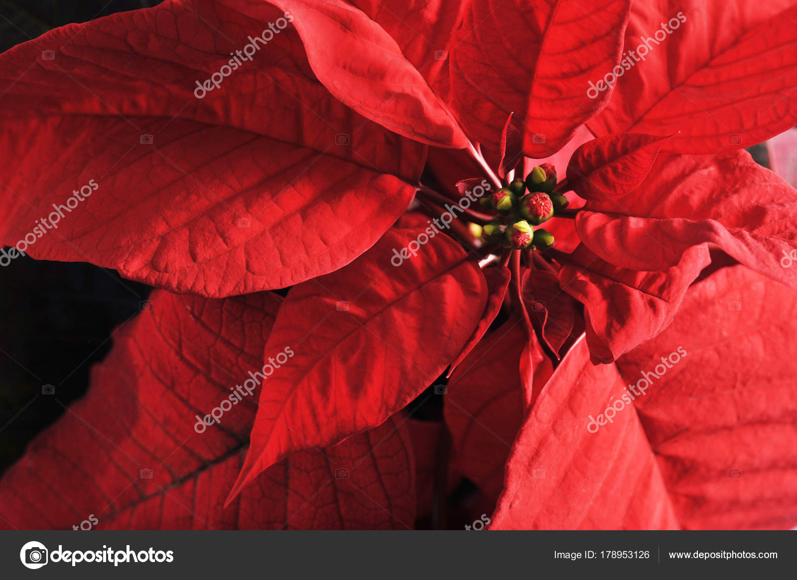 Plante Rouge Feuilles Fond Poinsettia Noel